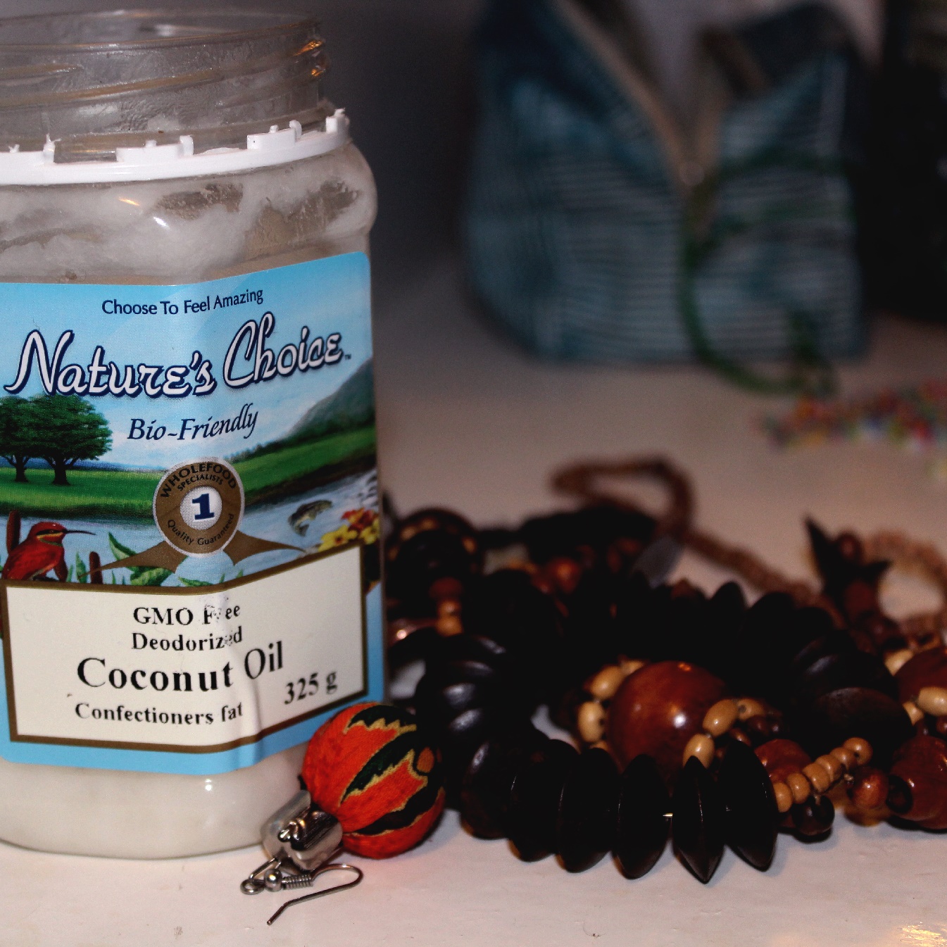 In my peripheral vision, out of focus- a tub of coconut oil.